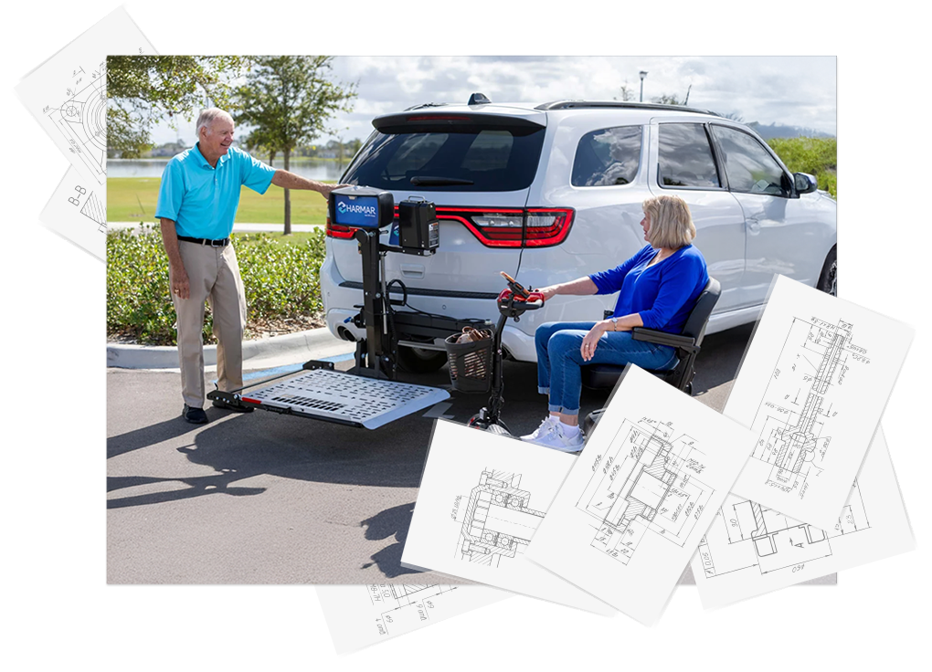 We offer hoist-style and platform-style lifts for inside or outside your vehicle and hitch mounted outside lifts. We’ll help you select the best fit for your vehicle and mobility device. Let’s get going!