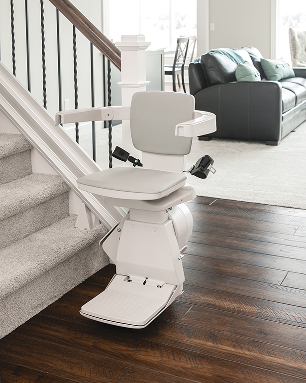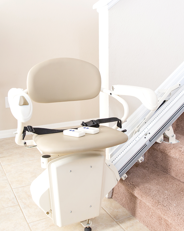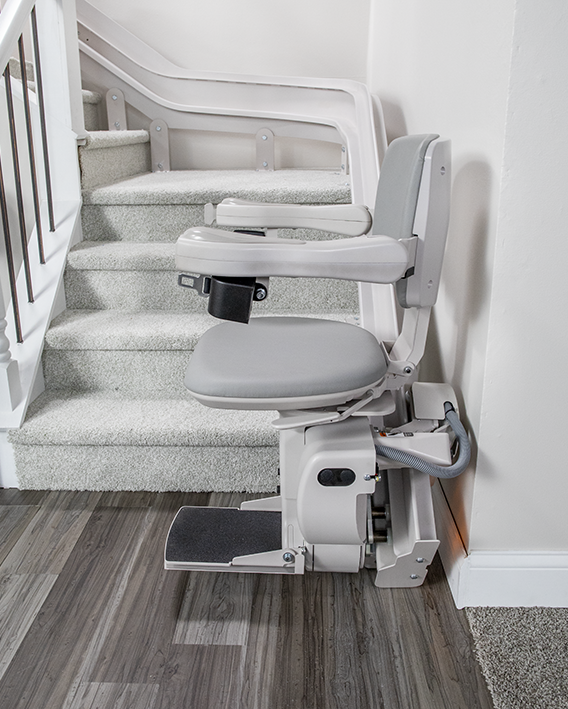 How they work: The stairlift is installed and attaches directly to the treads of your staircase and can work on any tread material. Once at the top of the stairs, the seat can be rotated and locked into place behind the user, creating a convenient and safe exit point for the individual.